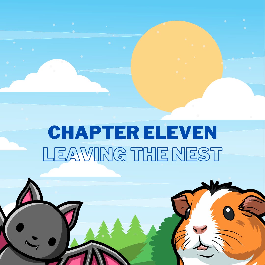 Bruce flew up to a branch in a nearby tree and looked back down at Ginny with a great big grin. He didn’t want to ruin the moment, but the truth was, his wing was aching.